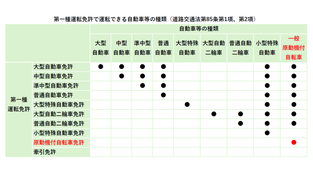 - 道路交通法上の一般原動機付自転車の区分より、新基準原付を原付免許で運転可能とすること