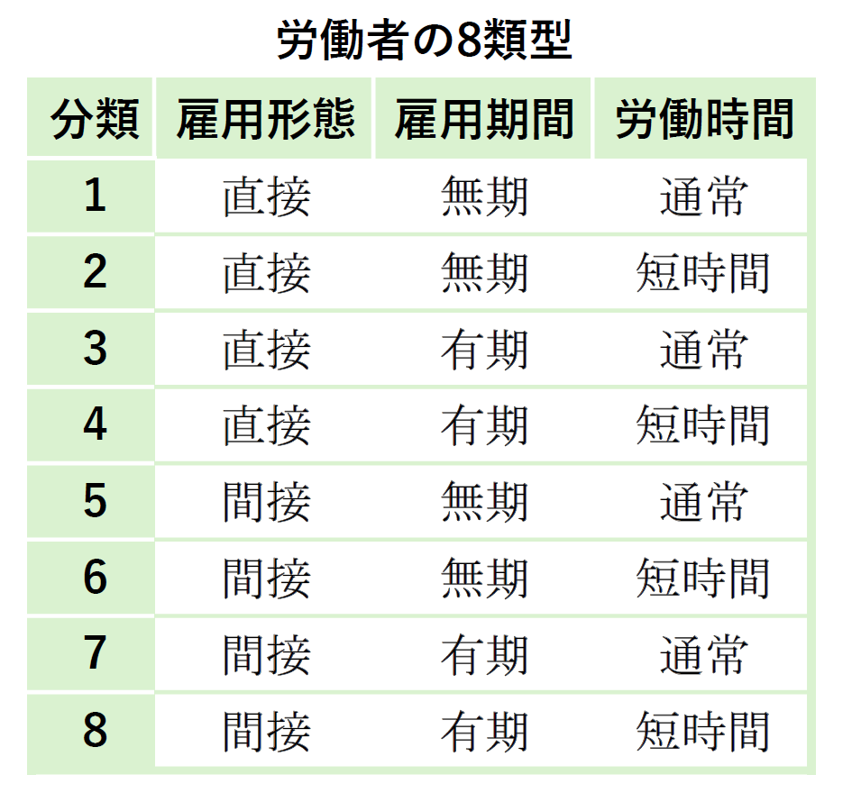 直接契約のうち、短時間労働や有期雇用の労働者は、無期雇用+通常の労働時間(いわゆる正社員)と比べて、不安定な雇用条件になりやすい。