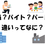 前回の記事(社員?バイト?パート?違いってなに?)で、社員・バイト・パートといった分類を、「雇用形態」「雇用期間」「労働時間」の3軸で整理した。