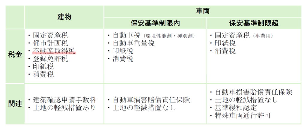 トレーラーハウスを建物として扱う場合、家屋という不動産として不動産取得税が課せられる。