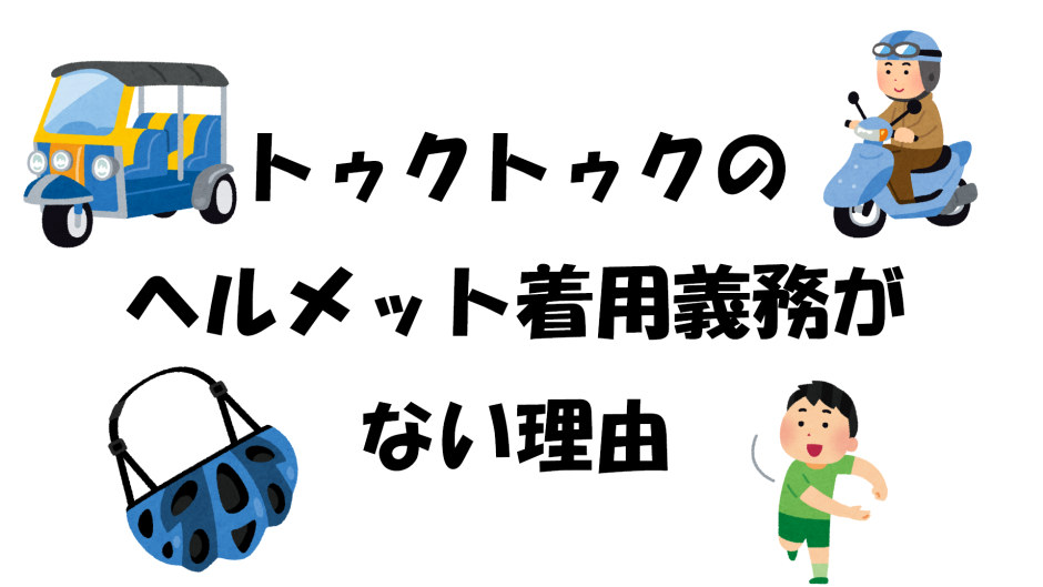 トゥクトゥクのヘルメット着用義務について、「なぜ着けなくていいのか」を中心に調べてみた。