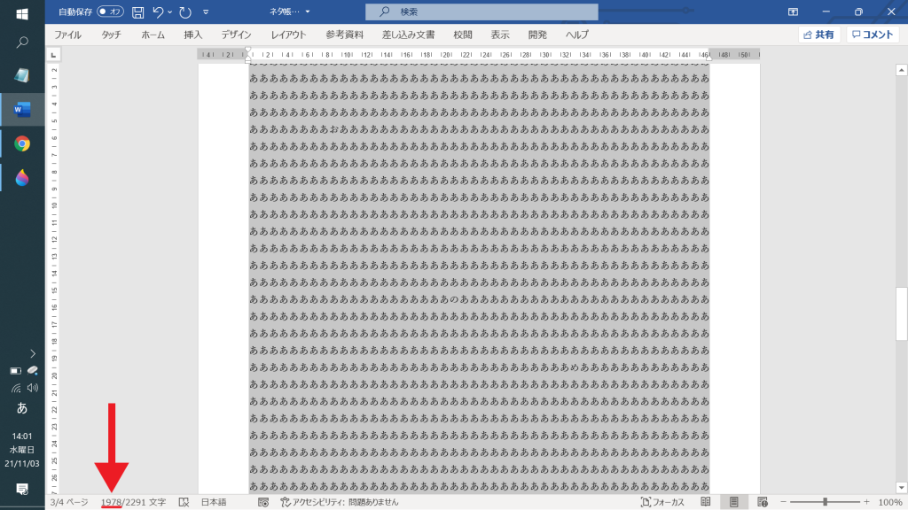 1000文字前後を目安に書いて行こう。あ、ちなみに、画像の中には「あ」以外の文字が3つ入ってるよ。